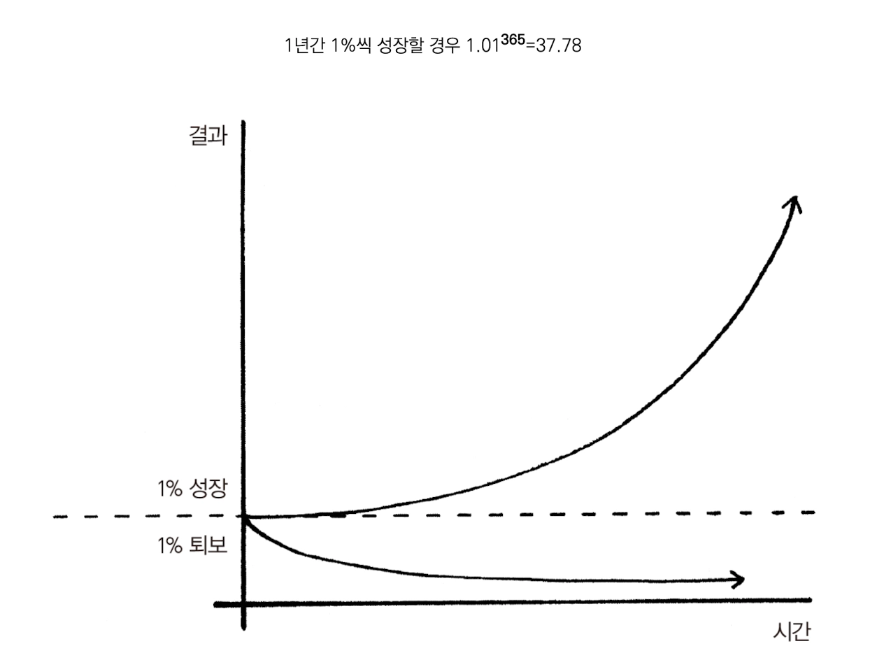 <아주 작은 습관의 힘>에서 작가 제임스 클리어는 1퍼센트 성장에 대해 이렇게 이야기합니다.