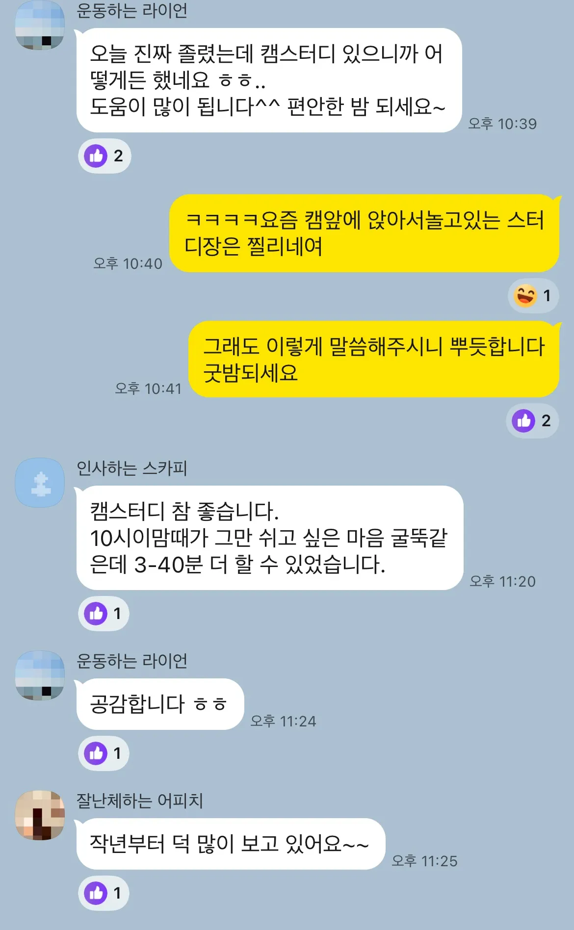 하루 일과 마치고 온라인에서 만나서 스몰톡하면서 생기는 소소하지만 다정한 유대감