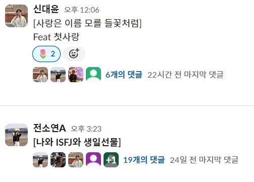 슬랙 채널에 글의 제목을 쓰고 본문은 스레드(댓글)에 달아주시면 됩니다.