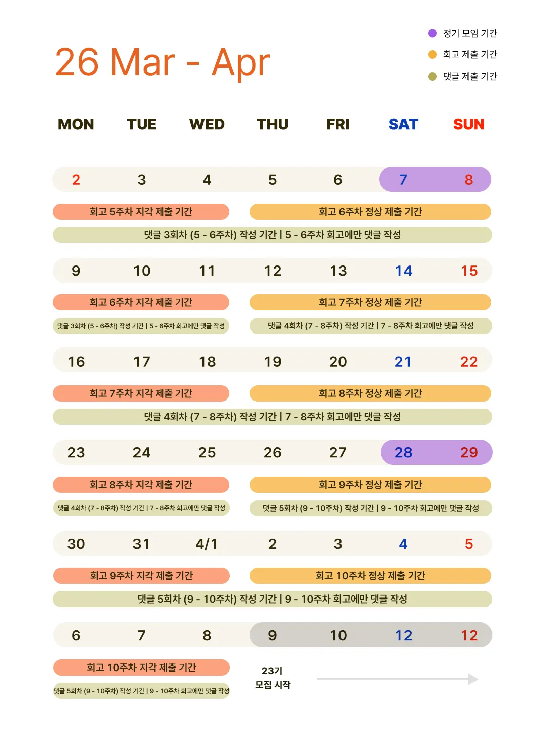 22기 메모어 회고/댓글 작성 기한 캘린더