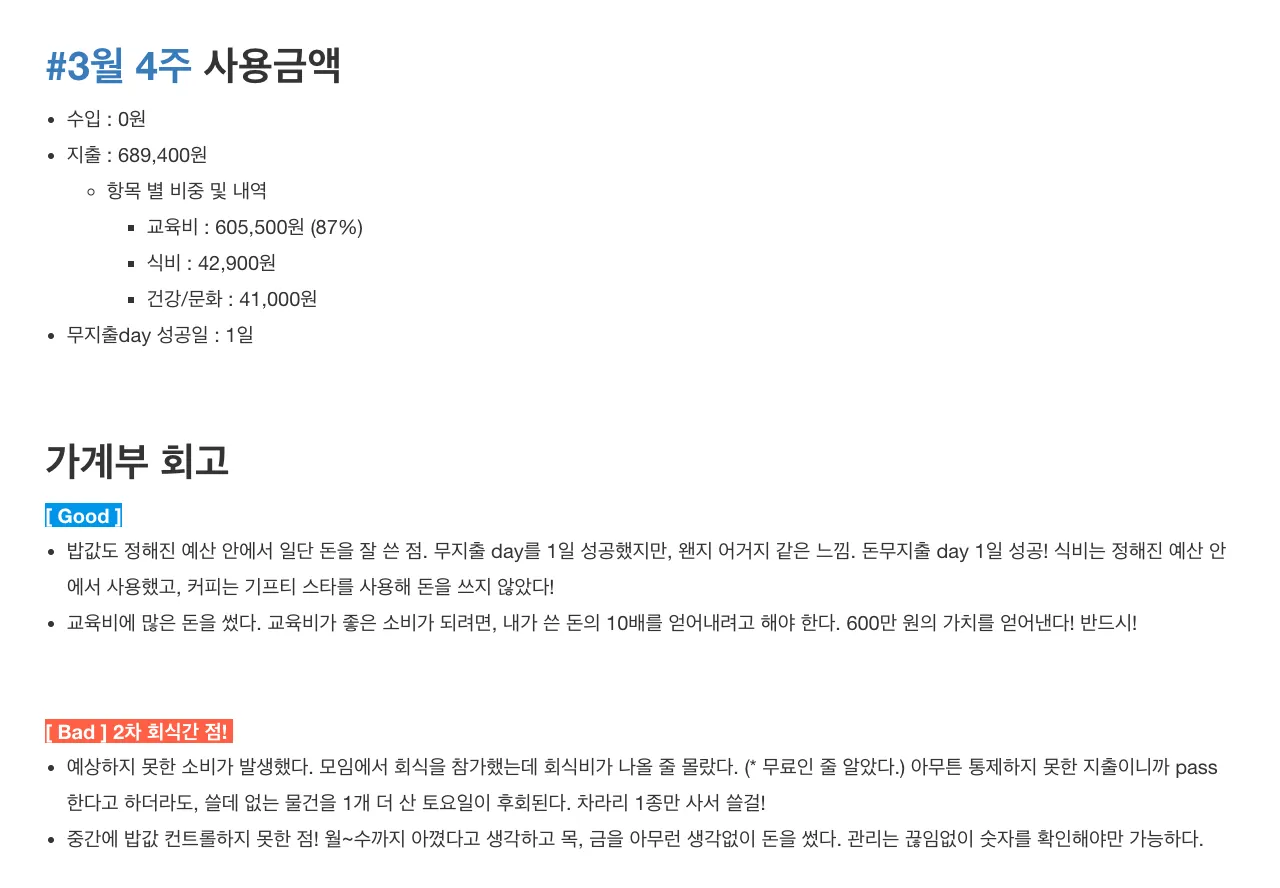 실제 모임장 사례 - 가계부 작성 및 회고 습관