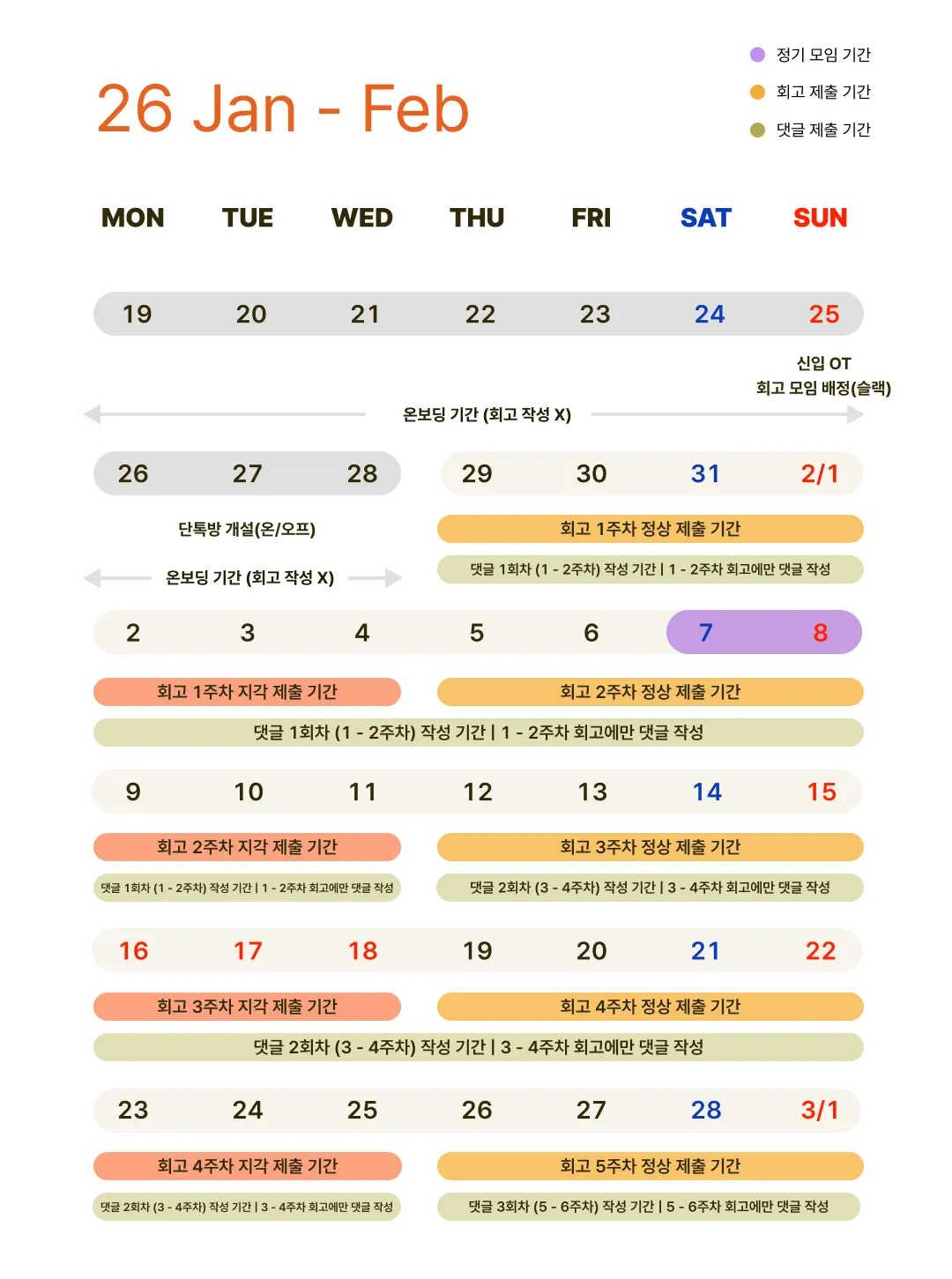 활동 기간: 1/29(목) ~ 4/8(수) (10주 간)