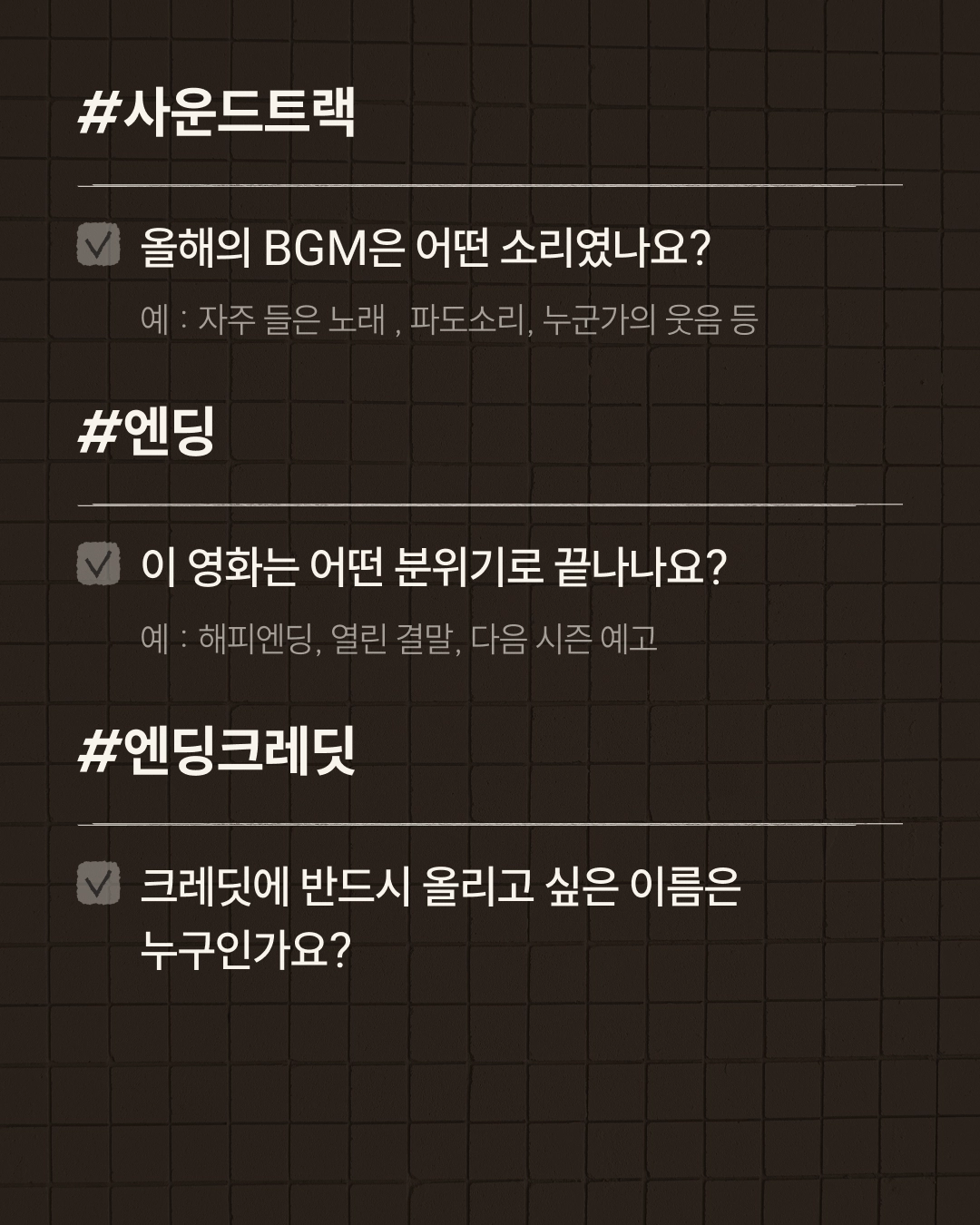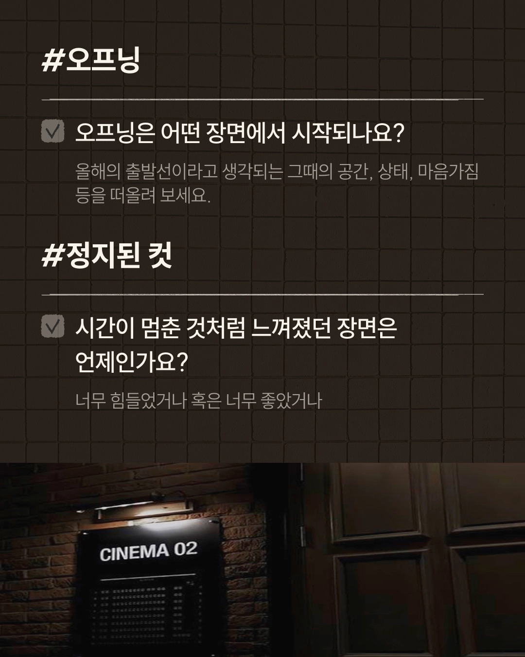 연말 회고를 ‘영화’ 컨셉으로 해본다는 건, 올 한 해를 한 편의 영화처럼 다시 재생해보는 일이에요.