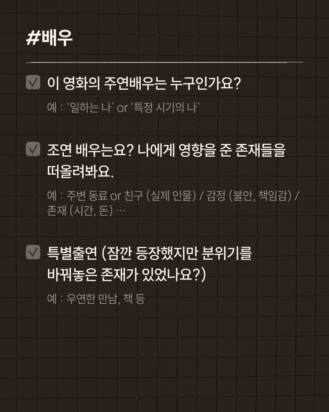 *구체적인 경험과 ‘왜’ 남기고 싶은지에 대해 적으면 더욱 확실히 나에게 내재될 거예요.
